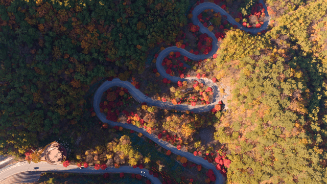 구불거리는 도로와 가을 단풍 산