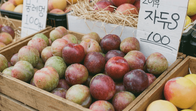시장에 진열된 신선한 석류