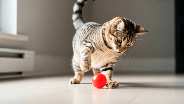 새끼 고양이들이 실내에서 색색의 장난감과 놀고 있는 모습