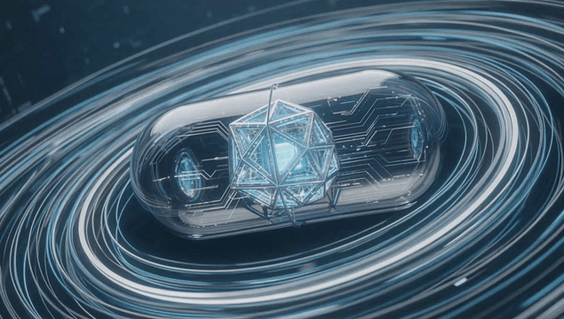 데이터가 표시된 미래지향적인 회전 홀로그램 큐브