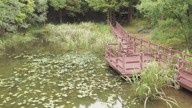 다양한 수초가 자라는 작은 연못들이 있는 공원