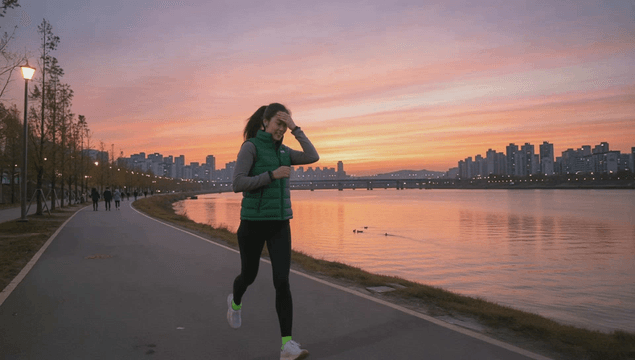 해질녘 강변을 달리는 여성