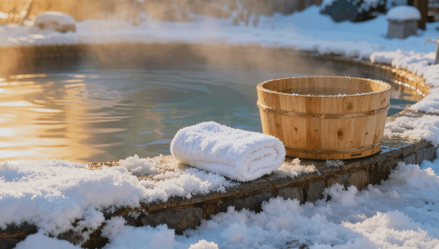 눈 내리는 노천 온천에서 휴식
