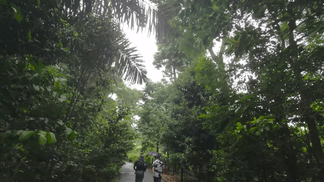 숲길을 걷는 모습