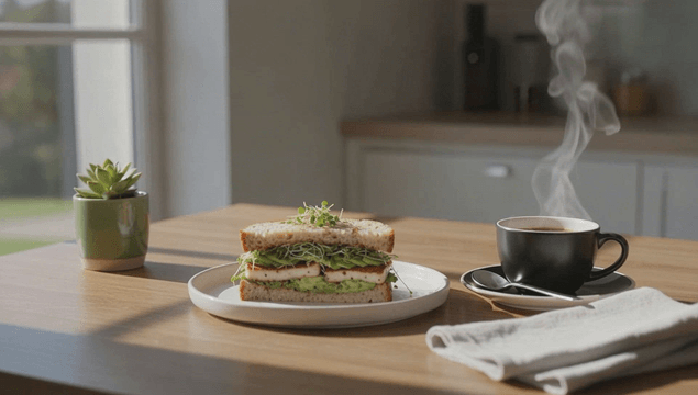 식사 테이블에 올려진 봄동 코울슬로 샌드위치