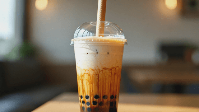 테이블 위에 먹다 남은 음료가 담긴 플라스틱컵