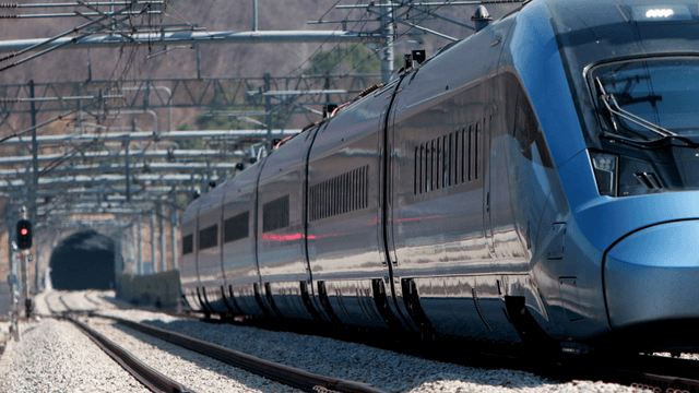 철도 위 빠르게 지나가는 고속 열차