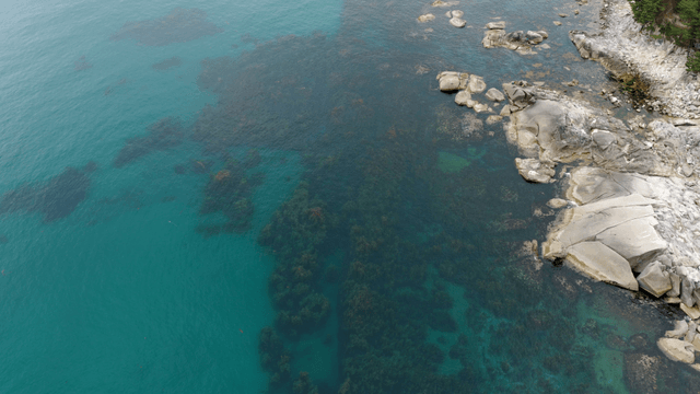 맑은 청록색 바다와 바위 해안선