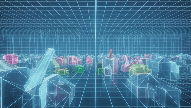 떠다니는 구조물이 있는 미래 디지털 그리드