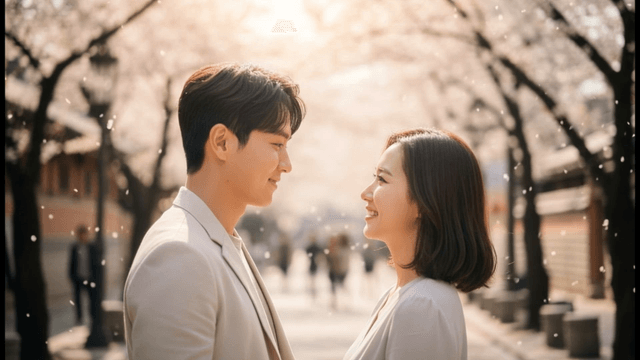벚꽃길에서 청혼하는 커플