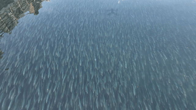 대규모로 떼를 지어 이동하는 은빛 물고기