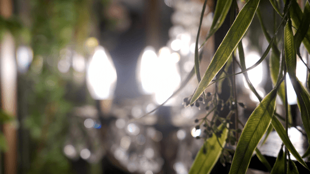 우아한 샹들리에와 섬세한 꽃들
