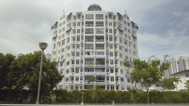 나무가 있는 고층 주거 건물