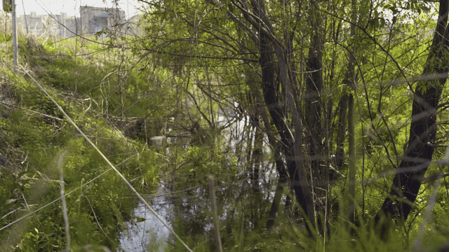 푸른 초목 사이로 흐르는 고요한 시냇물