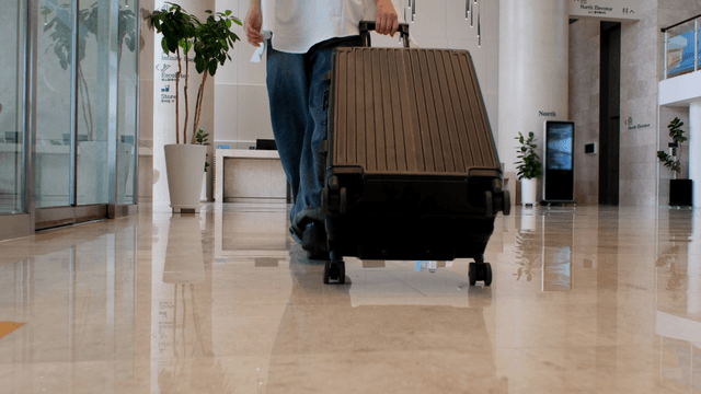 공항에서 캐리어를 끌고 걷는 사람