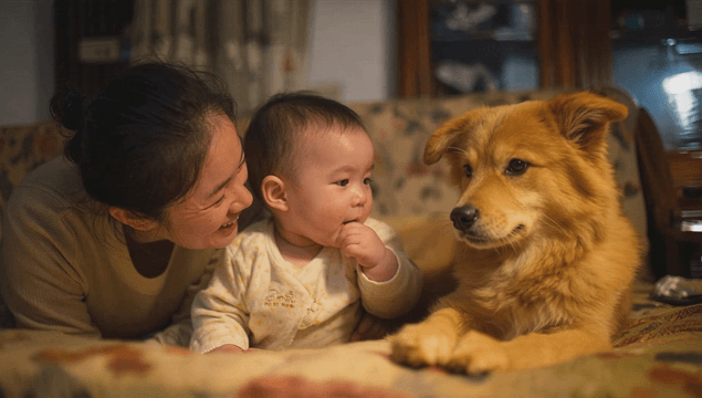 엄마와 아기 그리고 강아지가 함께하는 따뜻한 순간