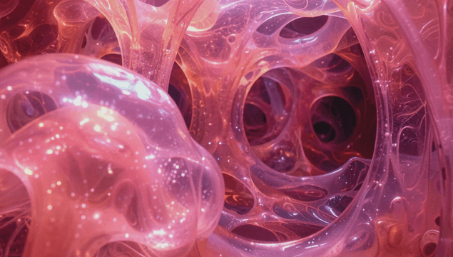 분홍색과 주황색 액체가 혼합되는 추상적인 패턴