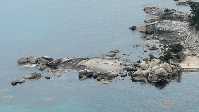 전통 정자가 있는 바위 해안선