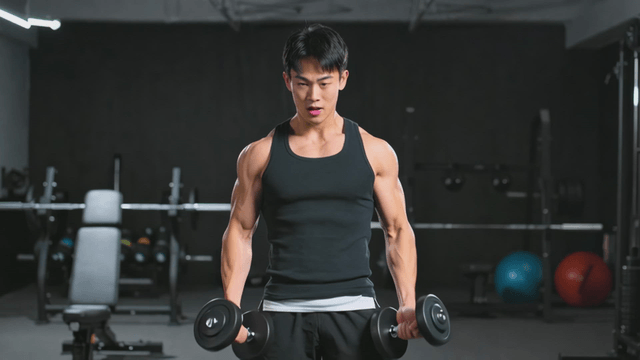 헬스장에서 덤벨을 드는 남자