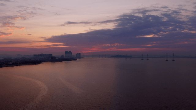 잔잔하고 평온한 바다를 물들이는 붉은 노을