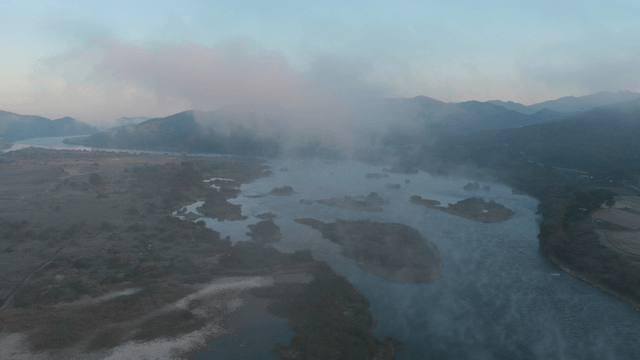 새벽 안개 낀 강 풍경