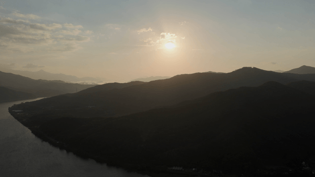 고요한 산머리 위로 펼쳐지는 평화로운 일출