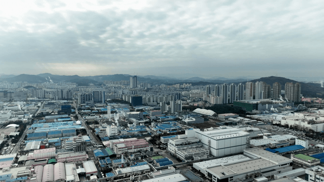 산자락 아래 자리한 산업 건물들