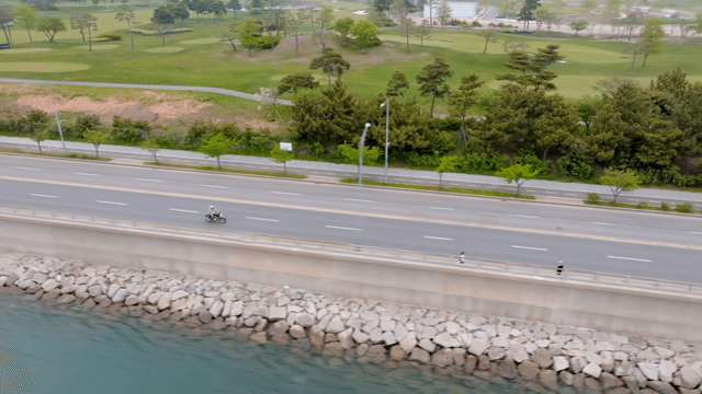 오토바이가 지나가는 해안도로