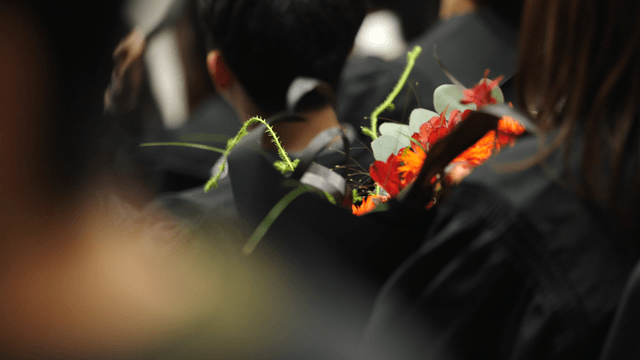 꽃다발을 들고 있는 졸업생
