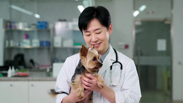 동물병원에서 강아지를 진료하는 수의사
