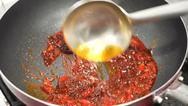 팬에 고추와 부워지는 마라 소스