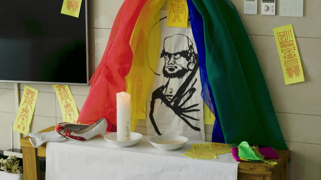 종교의식을 위해 종이에 불을 붙이는 어르신들