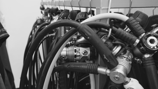 스쿠버 다이버의 수중 탐험 준비
