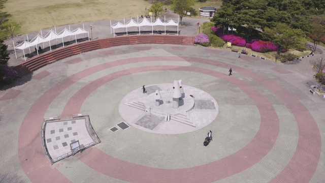 정원 조형물이 아름답게 꾸며진 공원 전경