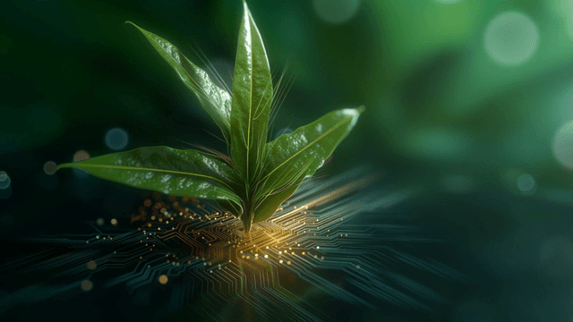 회로 기판 위의 녹색 잎
