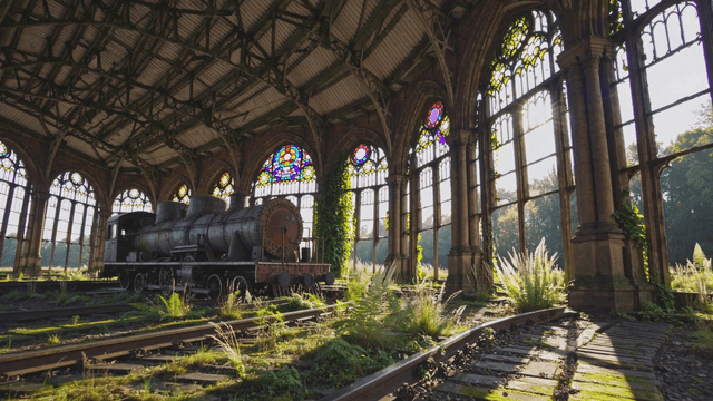 기차역에서 태양광 패널 옆을 지나가는 기차