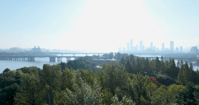 대교와 한강이 있는 서울 도시의 항공 뷰