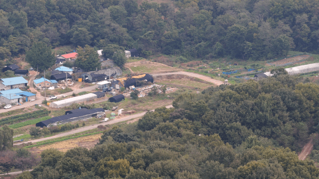 짙은 숲으로 둘러싸인 안개 낀 마을