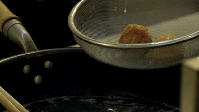 뜨거운 기름에 크로켓 건지는 젓가락