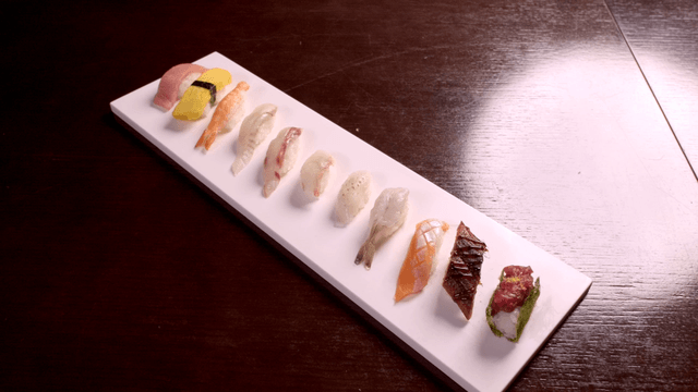 접시에 다양한 초밥 조각들