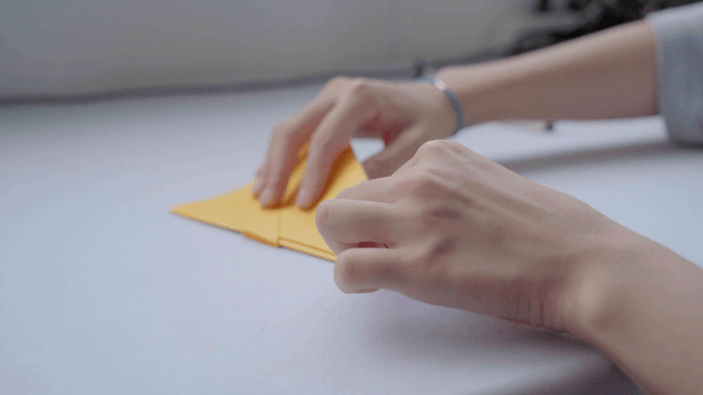 어둠 속에서 작은 종이를 정교하게 접는 손