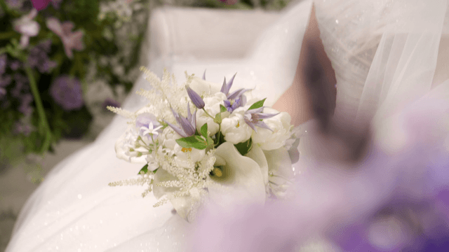결혼식 날 신부가 들고 있는 꽃다발