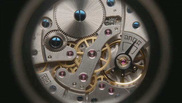 시계 제작자가 시계 기계장치를 조립하는 모습