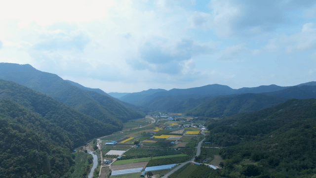 넓게 펼쳐진 농지와 산의 풍경