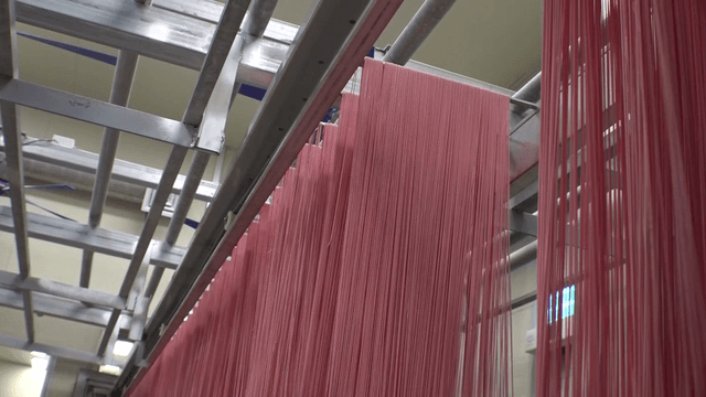 공장에서 걸려 있는 파스타 면