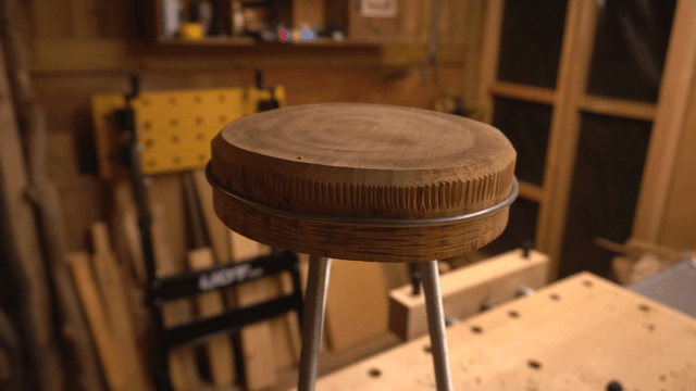 작업실의 나무 의자 상판