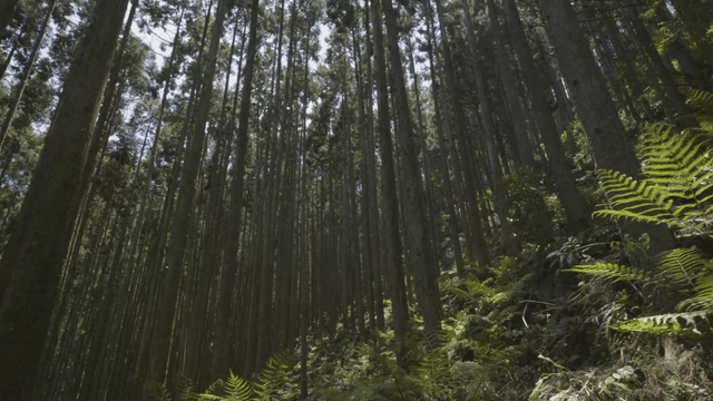 키 큰 나무와 양치식물이 있는 울창한 숲