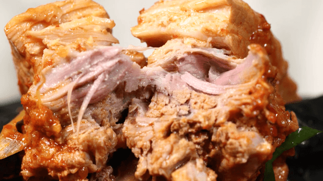 손으로 부드럽게 찢어지는 매콤한 양념의 돼지갈비찜