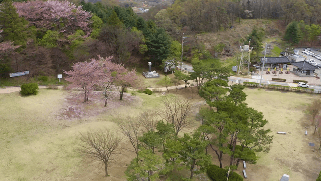 벚꽃과 전통 성문이 조화를 이루는 성곽