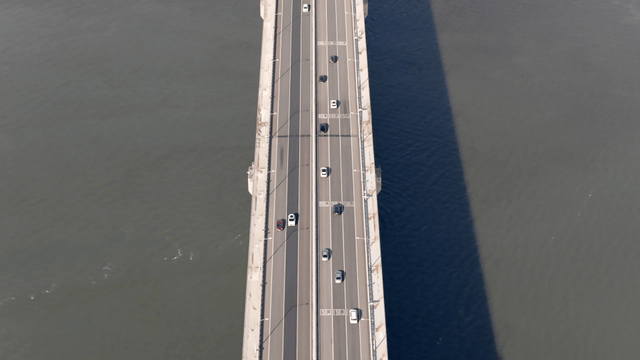 도심을 잇는 대교 아래로 번잡한 고속도로